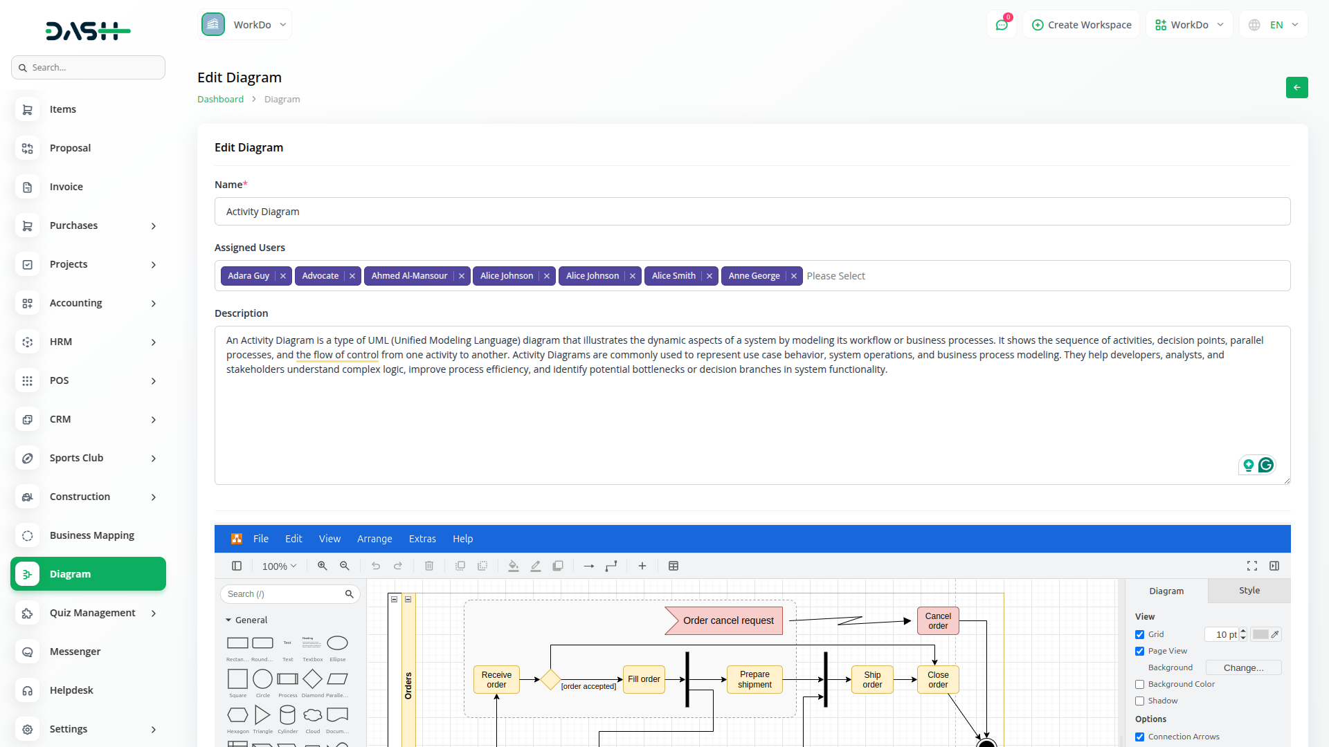 Simplify diagram creation and collaboration with Workdo Dash’s Diagram Add-On. Create, edit, and share diagrams with your team, clients, and partners effortlessly.