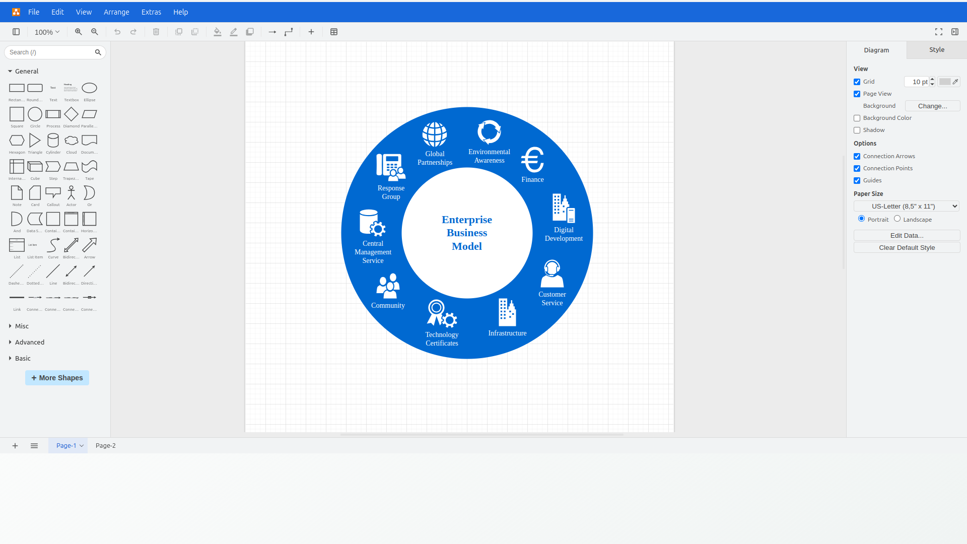 You can fully control how your diagram looks. Change the background colour, grid size, page size, shadows, and even the shape and direction of connection arrows. You can pick a portrait or landscape view, set up guides, and style the chart to match your needs. It’s all about giving you full freedom to design the way you like.